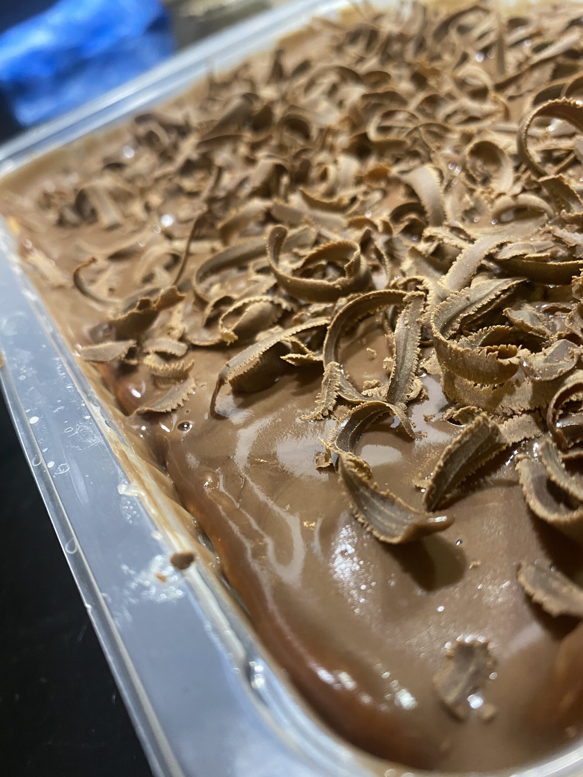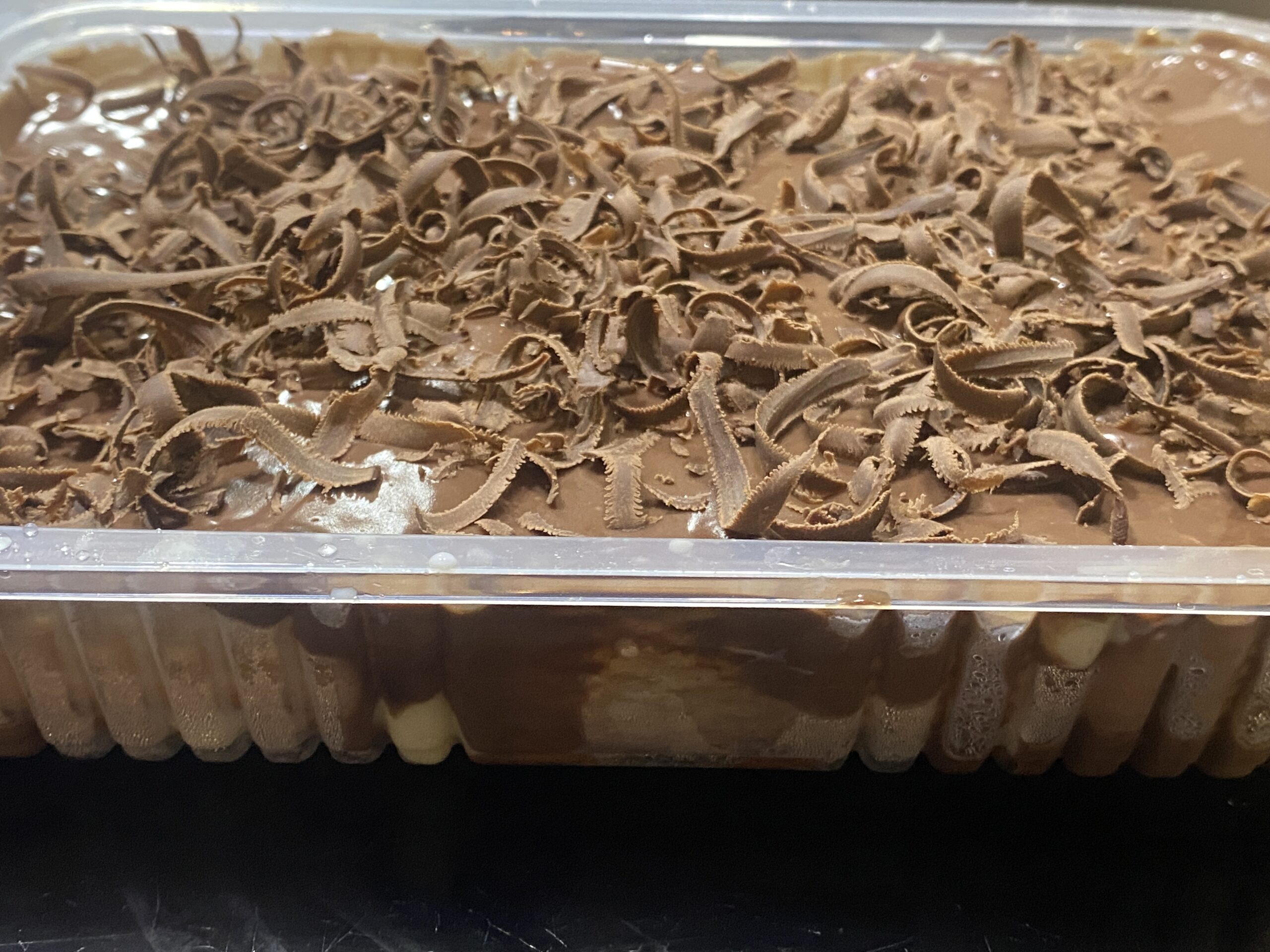 Camadas cremosas de chocolate gourmet. Serve ~8 pessoas.